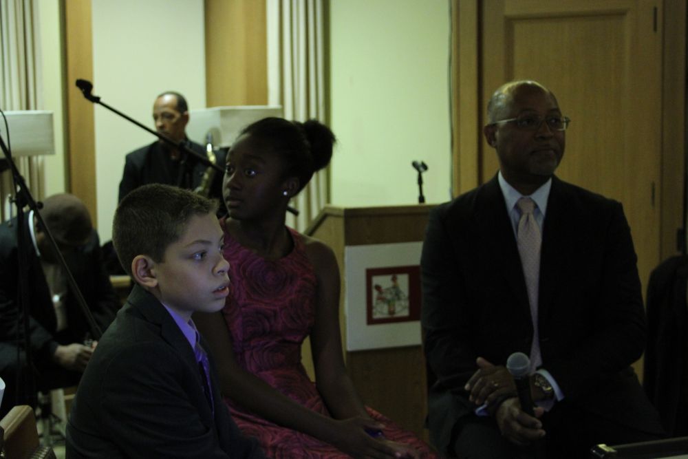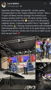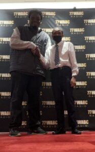 ACC Jordon in #1 Radio Market, New York, with WABC & Audacy #1 News Anchor, Larry Mullins, educating children on Broadcasting Careers.